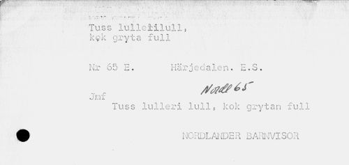 //// - •. .. r -- -.v , ; •. • ' V //// " - T --- % --.---. r ---««•» ;'••• •' //// ii, r t - f '• " ' • *' //// Tuss lulleiilull, kgk gryta full //// Nr 65 E. Härjedalen. E.S. //// Jnx //// Tuss lulleri lull, kok grytan full £ NORDLANDER BARNVISOR ////