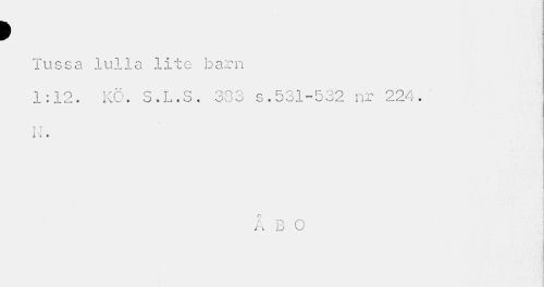 //// > //// Tussa lulla lite barn //// 1:12. KÖ. S.L.S. 333 s.531-532 nr 224. //// T T //// K « //// t //// Å B O //// u ////