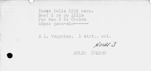 //// Tussa lulla liti barn. Soef i ro du lilla Far han ä åt Örebro köper gaes~sin~~--- //// A 1, Vaggvisa? 1 strt., mel. //// //aid/ 3 //// •MOLIN ÖREBRO ////