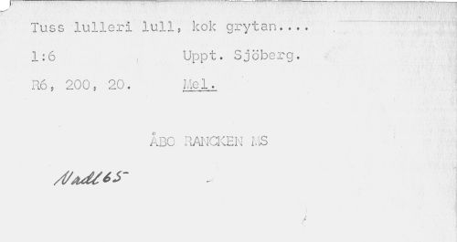 //// » ' * . \.- vJf //// ',.¦¦' v //// Tuss lulleri lull, kok grytan... 1:6 Uppt. Sjöberg. //// * //// R6, 200, 20. Mel. //// * * IWWM»''.^ !¦ —JHH»» //// ÅBO AANCKEN MS //// ¦ //// M //// 4 I ////
