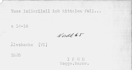 //// Tuss lullerilull kok kittelen full... s 14-16 //// Älvsbacka (VI) 2635 //// I F G H //// Vaggv.barnv. ////