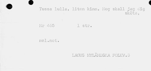 //// Tussa lulla, liten kinn, Nog skall jag dig //// sköta5 //// Nr 465 1 str. //// mel.not. //// LAGUS NYLÄNDSKA FOLKV.3 ////