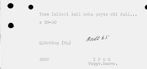 //// Tuss lulleri lull koka gryta väl full... //// *s 29-30 //// j //// Björkäng (Vgj //// 3928 I F G H //// Vagav.barnv. ////