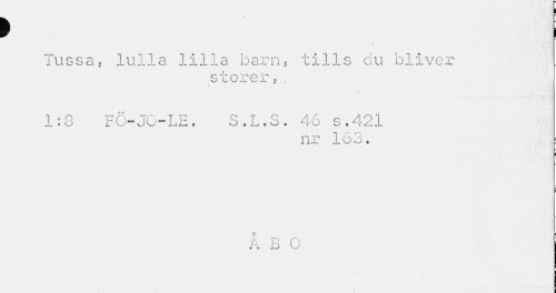 //// I //// Tussa, lulla lilla barn, tills du bliver //// storer,. //// . .4! //// 1:8 FÖ-JO-LE. S.L.S. 46 s.421 //// nr 160. //// i //// C //// A B C ////