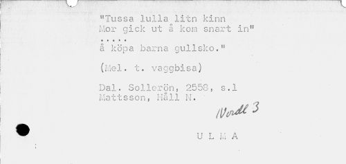 //// "Tussa lulla litn Icinri Mor gick ut å korn snart in" //// o « t * « //// å köpa barna gullsko." //// (l.iel. t. vaggbisa) //// Dal. Sollerön, 2558, s.l Mattsson, Håll N. ' //// /l/cn^ 3 //// ® u l i.; A //// t * ////