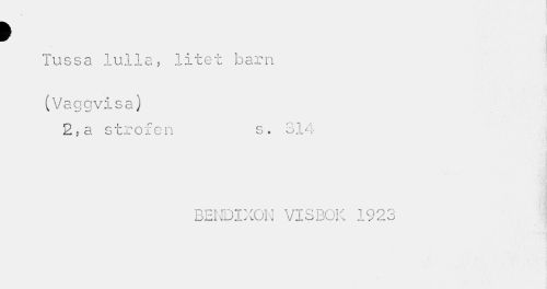 //// > i //// Tussa lulla, litet barn //// (Vaggvisa) //// 2,a strofen s. 314 //// ? //// BENDIXON VISBOK 1923 ////