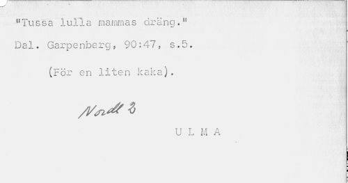 //// 15 iussa lulla mammas dräng . " //// w //// Dal. Garpenberg, 90:47, s.5. //// (För en liten kaka). //// U L M A //// ¦ I ////