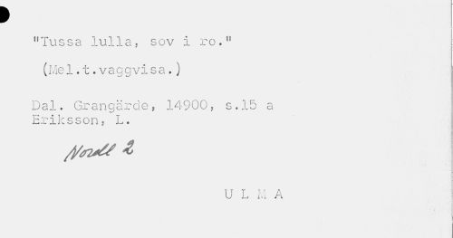 //// p //// "Tussa lulla. sov i ro." (Mel.t.vaggvisa.) //// Dal. Grangärde, 14900, s.15 a Eriksson, L. //// t //// U L M A //// i | //// I //// , i ////