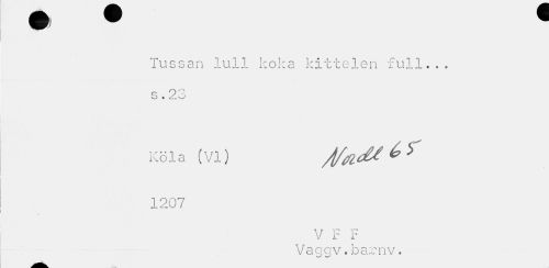 //// Tussan luli koka kittelen full... s. 23 //// Köl a (VI) 1207 //// V F F Vaggv.barnv. ////
