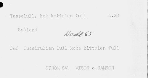 //// p //// Tusselull, kok kettelen full s.28 //// Småland y . //// s //// Jinf Tussirulian luli koka kittelen full //// STRÖM SV. VISOR o.RAMSOR //// / ////