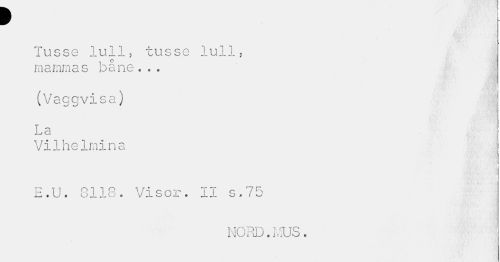 //// p //// Tusse luli, tusso luli, mammas bane«.. //// (Vaggvisa) La //// Vilhelmina //// E.U. 8118. Visor. II s,75 //// NORD.MUS. ////