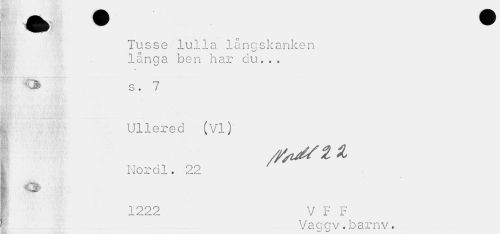 //// Tusse lulla låncskanken 0 ^ //// langa ben har du... //// km/ //// ^ s. 7 //// Ullered (VI) //// | Nordl. 22 //// 1 //// I 1222 V F F //// ...v Vaggv.barnv. ////