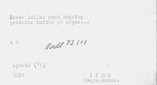 //// Eusse lullan runtfomkring getterna kutter på rågor... //// | //// ^73 //// Lysvik (vl) //// 3354 ' I F G H //// VAggv.barnv. ////