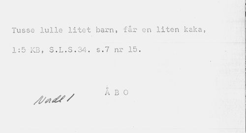 //// Tusse lulle litet barn? får en liten kaka, 1:5 KB, S.L.S.34. s.7 nr 15. //// . y ÅBO ////