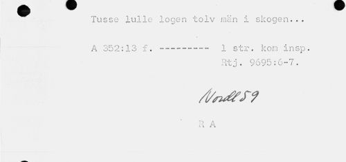 //// Tusse lulle logen tolv män i skogen... //// A 352:13 f. --- 1 str. kom insp. //// Rtj. 9695:6-7. //// R A il Åt ////
