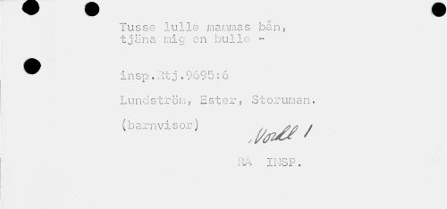 //// Tusse lulle mammas bån, tjäna mic en bulle - //// ^^ Insp * Ht j «9695 :6 //// Lundström? Ester? Storurnan. (barnvisor) ^ / //// VA INSP. ////
