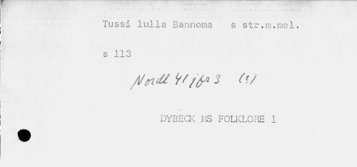 //// ¦ ¦ ' . ^ ... : J. .. ... i .,- //// Tussi lulla Bannorna s str.m.mel. s 113 //// /i//ndi 9'/6» 3 W //// DYBECK MS FOLKLORE 1 ////