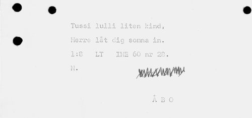 //// Tussi lulli liten kind, Herre låt dig somna in. 1:8 LT INE 60 nr 28. //// o //// A Q C\ //// H u U ////