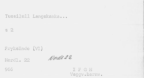 //// Tussilull Langskanka... s 2 //// Fryksände (VI) ¦ Nordl. 22 //// 966 I F G Ii //// Vacqv.barnv. //// w rnmS ////
