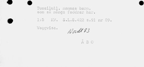 //// iussilull. mammas barn, som så många faddrar har. //// Q 1:5 KV. S.L.S.422 s.91 nr 89. //// Vaggvisa. y^^fj //// Å B O ////