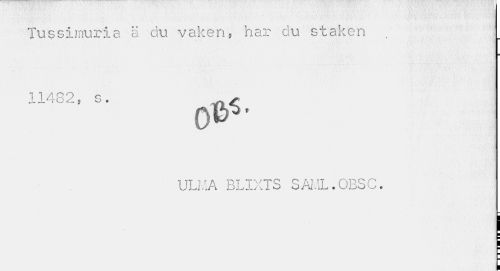 //// Tussimuria ä du vaken, har du staken . 11482, s. tåfi //// ULI.-A BLIXTS S Al .IL. OBS C. //// ¦ ////