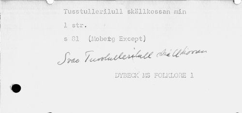 //// Tusstullerilull skällkossan min 1 str. //// s 81 (Möbetg Except) //// Ju* ^^ //// N //// DYBECK MS FOLKLORE 1 ////