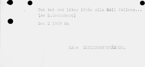 //// Tut tut det låter ifrån alla Kall fallera... //// (Av B.Cederberg) //// ® Se: E 1909 hh //// KB:s SKILLINGTRYCKSREG. ////