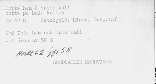 //// Tutte hem å tutte vall tutte på bale kullen //// Nr 62 D ' Csterqtld, Kinda* Cstc.lmf //// Jmf Tule hem ock tule vall Jm£ även nr 58 G //// /faAtS 5 ^ //// N0RDLA1 IDER BARNVISOR //// | //// i ////