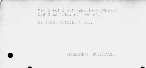 //// ...¦ • • . //// ¦ ' • //// Tvi å tvi å tvi ocka lata jänter.' Dojj ä så late, så late så. //// Da 1403, Vallat, 1 str. m ANDE RS.S0N SV. LÅTAR. //// 4 ////