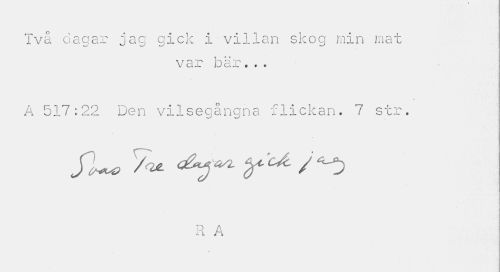 //// Två dagar iag gick i villan skog min mat //// Vr "vs //// al jJGa. # # « //// A 517:22 Den vilsegångna flickan. 7 str. //// SU* dy ™ y / ^ //// D A II I //// i. i jr\ ////