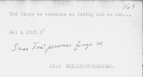 //// / ijp y //// Två fingo se varandra en fattig och en rik,.. Se: E 1885 j4 //// V //// . KB: s SKIL LINGT RYCKS REG. //// j i ////
