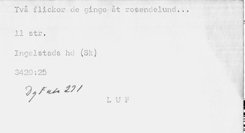 //// Tva flickor de gingo at rosendelund... 11 str. //// Ingel stads hö (Sk) 3420:25 //// / L U F j ////