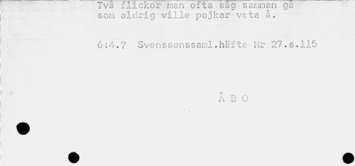 //// som aldrig ville pojkar veta å. //// \ //// 6:4.? Svenssonssaml.häfte Nr 27.s.115 //// i \ • • • -'--i //// o //// A B 0 ////