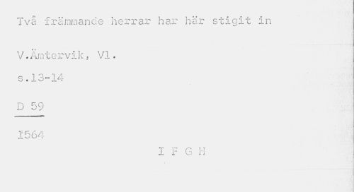 //// Två främmande herrar har här stigit in « • //// V.Arntervik, VI. s.13-14 //// D 59 1564 //// I F G H ////