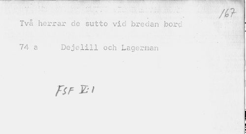 //// * ... /'/ /. //// / fo r //// Två herrar de sutto vid bredari feörd ' ' //// • • //// 74 a Dejelill och Lagerman //// Fsf Z I ////