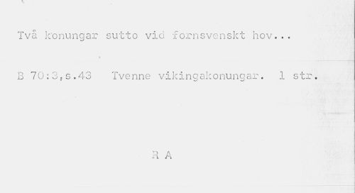 //// Två lconungar sutto vid; fornsvenskt hov... B 70:3.s.43 Tvenne vikingakonungar. 1 str. //// D A ii //// 1 ////