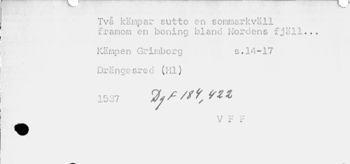 //// Två kämpar sutto en sommarkväll framom en boning bland Nordens fjäll... //// Kämpen Grimborg s.14-17 //// • * //// Drängesreo (Hl) 1537 ^/-'//^ //// V F F ////