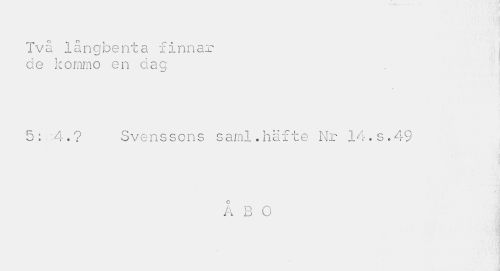 //// Två långbenta finnar de lcornmo en dag //// 5: :4.? Svenssons saml.häfte Nr 14.S.49 //// A B 0 ////