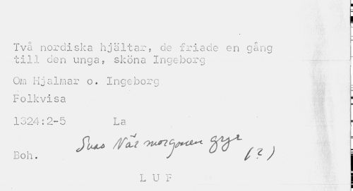 //// Två nordiska hjältar, de friade en gång till den unga? sköna Ingeborg- //// Om Hjalmar o. Ingeborg //// Folkvisa ; //// 1324:2-5 La //// Boh. J / - / I //// LUF ////