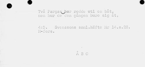 //// Två Parga^Joor rodde uti en båt, men hur de den gången buro sig åt, //// 4:5. Svenssons saml.häfte Nr 14.S.28. H-fors. //// ÅBO ////