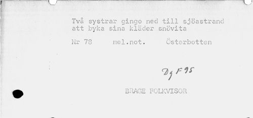//// . r • ¦ //// ¦ //// ¦ //// ¦ //// I Två systrar gingo ned till sjöastrand //// att byka sina kläder snövita //// _ . * Nr 78 mel.not. Österbotten //// / //// Q* /= ir //// A BRAGE FOLKVISOR ////