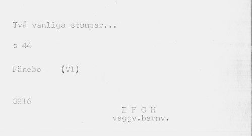 //// Två vanliga stumpar... //// s 44 //// Fänebo (VI) 3816 //// I F G H vaggv.barnv. ////