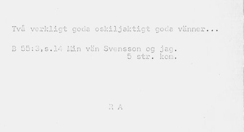 //// Två verkligt goda oskiljaktigt goda vänner... //// i //// B 55;3,5.14 Min vän Svensson og jag. j //// tr . korn. //// i //// A //// i ////