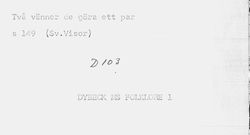 //// Två vänner de göra ett par s 149 (Sv.Visor) //// 2)/o 3 //// DYBECK MS FOLKLORE 1 //// - //// r i ////