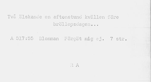 //// Två älskande en aftonstund kvällen före //// bröllopsdagen... //// A 517:55 Blomman Förgät mig ej. 7 str. //// 11 A //// é «.. . • .. . ... .. ... . « . ^ .. ... i ij ////