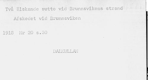//// Två älskande sutto vid Brunnsvikens strand //// Af skedet vid Brunnsviken I //// 1918 Nr 20 s.30 I //// DALKULLAN I ////