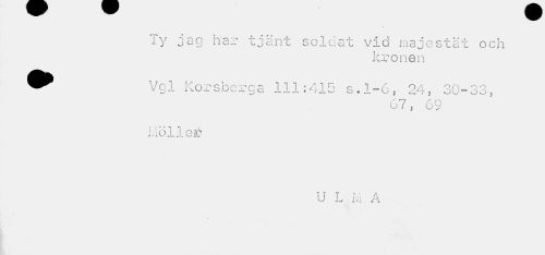 //// iy jag har tjänt soldat vid majestät och //// kronan //// Vc.l Korsberga 111;415 s.1-6, 24, 30-33, //// 67, 69 //// Liöller //// U L M A ¦ //// »4 - "I //// I ////