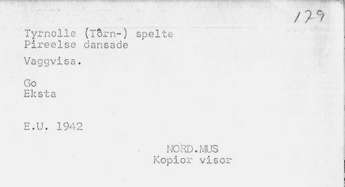 //// Tyrnolle (Tom-) spelte Pireelse dansade //// Vaggvisa. Go //// Eksta E.U. 1942 //// NORD.MUS //// Kopior visor ////