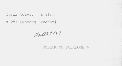 //// Tyrli toäva. 1 str.. s 251 (Moberg Excerpt) //// te ) //// . //// I I //// DYBECK MS FOLKLORE 4 //// 4 ////