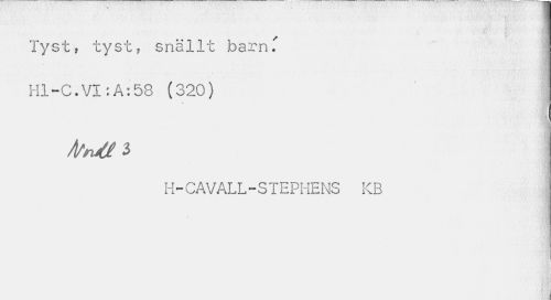 //// Tyst, tyst, snällt barn.' Hl-C.VI:A:58 (320) //// I //// htraUl //// H-CAVALL-STEPHENS KB //// i i ////